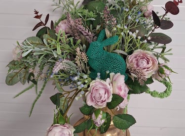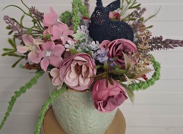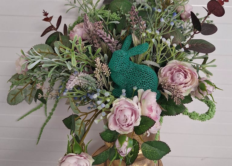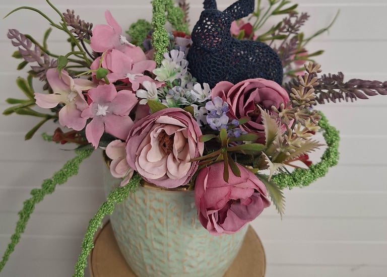 Dirbtinių augalų kompozicija metaliniame vazonėlyje